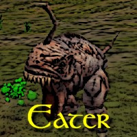 "Eaters are the trained war dogs of the Viamontian army and readily defend their masters to the death. Eaters will swallow most anything, including the odd sword or penguin. But the thing they find most delectable is a special gland from the Fiun race. Removal of the gland causes madness, and the wholesale enslavement of the Fiun by King Varicci in order to slake the appetites of their ravenous pets explains the hoards of maddened and crazed Fiun that wander the Isle of Ruin. It is an irony not lost on the Fiun, for they are the ones who birthed the Eater. They were a proud and magnificent society, flourishing with great achievements that allowed them the ultimate hubris, an attempt to create life from nothingness. The resulting abomination destroyed their world and resulted in the Fiun flight to Dereth." --Town Network Painting