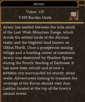 Notes: This is a screenshot of the game Asheron's Call, and the copyright for it is held by the company that developed the game (Turbine, Inc). The use of the image qualifies as fair use under United States copyright law, as such display does not significantly impede the right of the copyright holder to sell the copyrighted material, is not being used to generate profit in this context, and presents ideas that cannot be exhibited otherwise.