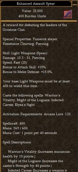 | Notes: | This is a screenshot of the game Asheron's Call, and the copyright for it is held by the company that developed the game (Turbine, Inc). The use of the image qualifies as fair use under United States copyright law, as such display does not significantly impede the right of the copyright holder to sell the copyrighted material, is not being used to generate profit in this context, and presents ideas that cannot be exhibited otherwise. |