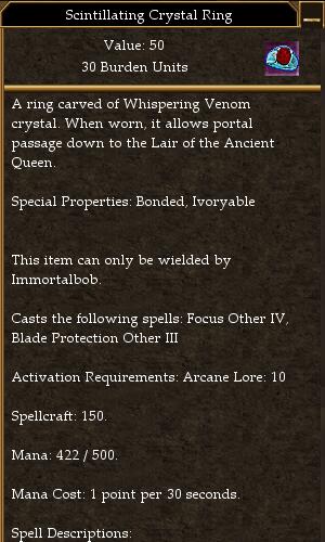 | Notes: | This is a screenshot of the game Asheron's Call, and the copyright for it is held by the company that developed the game (Turbine, Inc). The use of the image qualifies as fair use under United States copyright law, as such display does not significantly impede the right of the copyright holder to sell the copyrighted material, is not being used to generate profit in this context, and presents ideas that cannot be exhibited otherwise. |