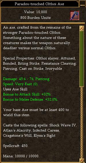 [[File:Paradox-touched Olthoi Axe.jpg]] | [[File:Paradox-touched Olthoi Axe.jpg]] | ||