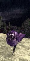 "The eerily floating Niffis cast bizarre shadows across the sands. Strangely beautiful, these creatures are, unfortunately, also aggressive. Their form suggests an affinity for water, yet many of them congregate in deserts, basking in the harsh sun and balancing themselves with their lateral "wings." It is thought the fine-grained Derethian sand may fulfill a function similar to water for the Niffis, a creature obviously saturated with alien and incomprehensible magic. Still, some rare Niffis do appear to seek out water, suggesting these creatures may once have had more humble and ordinary origins." --Town Network Painting