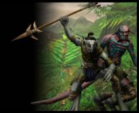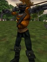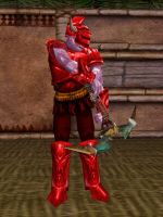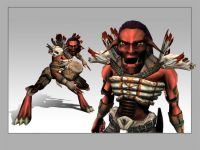 In return for doing the bidding of the Virindi, the Hea are granted Virindi weapons and passage to the freedom of mainland Dereth. It is "Hea Arantah's" warriors who have bedeviled humans for so long. The loose siege maintained around Dryreach, for example, is used by the tribe as a brutal training ground for new warriors. But there was one last condition of this bargain. In order to serve as "infiltrators," the Virindi altered the bodies of the Hea from their natural form to something more human." --Town Network Painting