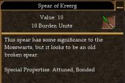 | 11:57, 10 March 2024 | Spear of Kreerg.jpg (file) | 15 KB | Maintenance script | == Summary == Importing file | 1 | |
