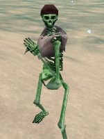 Walking bones that sometimes fool the unwary traveler by lying on the ground in a heap of bones. Only springing to life when you get too close. Supernaturally reanimated remains of the first Isparian settlers, Skeletons restlessly carry out their mission to exact the pain they experienced in their lives upon others. Ranging from rickety and weak to extremely fearsome and powerful, Skeletons can be found in every corner of Dereth, and use any means of attack available to them, from melee and missile weapons in the weaker classes to extremely potent magic assaults. Despite their great power, a brutal bludgeoning attack is the most assured way to reduce a skeleton back to an inanimate pile of dried bones.