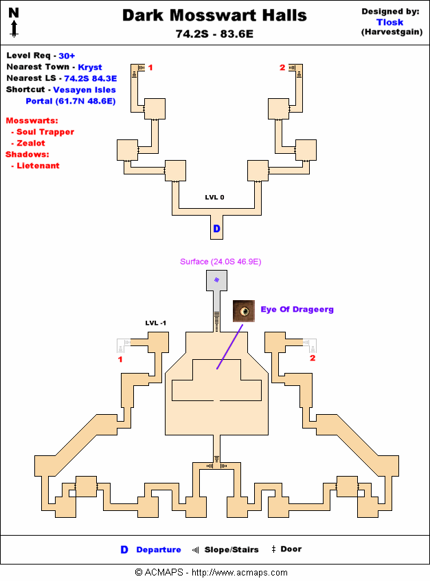 - Next you need to go to the Dark Mosswart Hall at 74.2S, 83.6E near Kryst on the Vesayan Isles.
