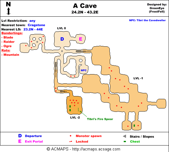 | A Cave | 24.2N, 43.2E | -- | 018B | Tibri's Fire Spear Quest |