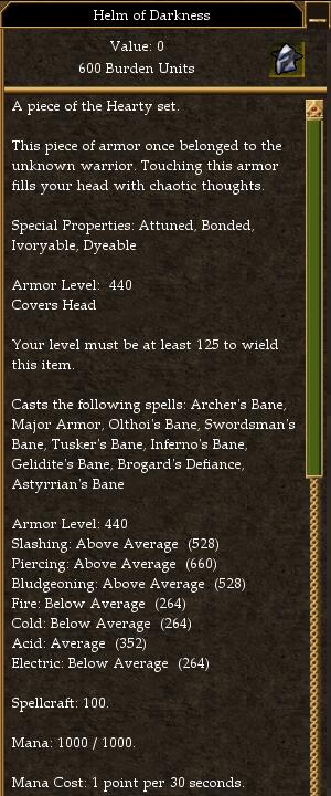 This is the information that appears when you examine things such as weapons, armor, clothing, jewelry and any other types of item. Your success at appraising items used to be based on the level of your Appraise Skills but the skills were later replaced with the Tinkering skills and now all players can view item information.