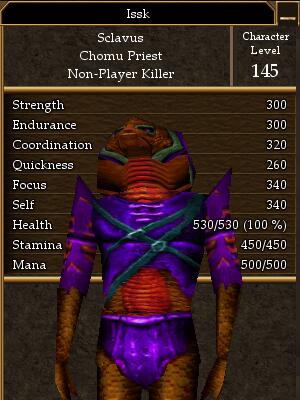 Notes: This is a screenshot of the game Asheron's Call, and the copyright for it is held by the company that developed the game (Turbine, Inc). The use of the image qualifies as fair use under United States copyright law, as such display does not significantly impede the right of the copyright holder to sell the copyrighted material, is not being used to generate profit in this context, and presents ideas that cannot be exhibited otherwise.