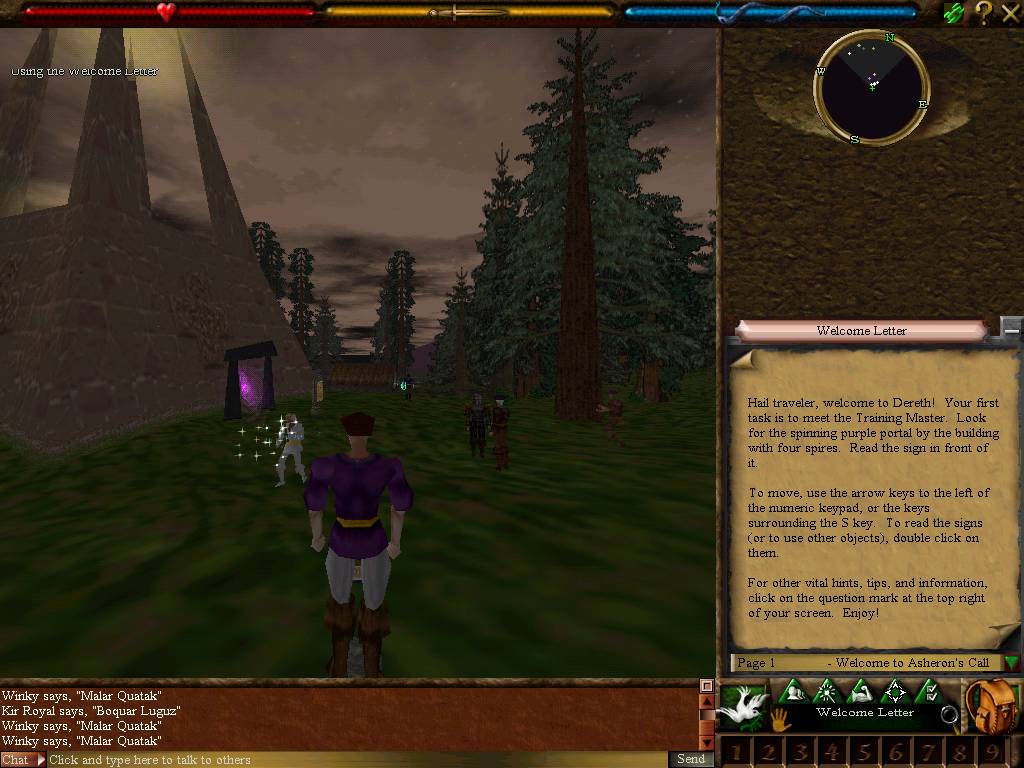 | Notes: | This is a screenshot of the game Asheron's Call, and the copyright for it is held by the company that developed the game (Turbine, Inc). The use of the image qualifies as fair use under United States copyright law, as such display does not significantly impede the right of the copyright holder to sell the copyrighted material, is not being used to generate profit in this context, and presents ideas that cannot be exhibited otherwise. |