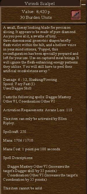 Notes: This is a screenshot of the game Asheron's Call, and the copyright for it is held by the company that developed the game (Turbine, Inc). The use of the image qualifies as fair use under United States copyright law, as such display does not significantly impede the right of the copyright holder to sell the copyrighted material, is not being used to generate profit in this context, and presents ideas that cannot be exhibited otherwise.