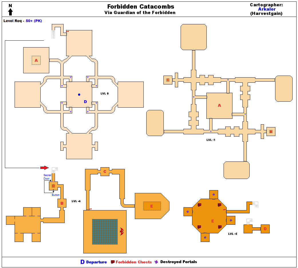 - Forbidden Chest - Four chests found on the bottom level of the catacombs, use Forbidden Key to unlock.