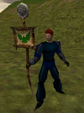 - A hafted, crest tipped banner with a Falcon on it. It is somewhat tattered, and the colors seem to be washed out.