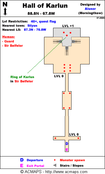 - Enter the Hall of Karlun at 88.9N 67.8W and at the end kill Sir Belfelor and loot the Ring of Karlun.