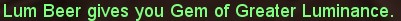 Each Beer grants a Gem of Greater Luminance, good for 15,000 Luminance.
