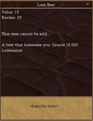 Lum Beers can be found for sale on the Lord of Reward, as a random prize when opening a Reward Chest and are sometimes handed out as rewards for Live Events.