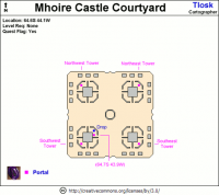 You must complete a quest to gain access, handing three brands to the Guardian Statue at 64.6S 44.1W in Graveyard. See the Castle of Lord Mhoire Quest for details. After handing the brands a shortlived portal appears next to the statue that only the hander can use. On repeat visits simply use the statue to summon the portal. The courtyard is a floating platform and there are portals to the four towers of Mhoire Castle.