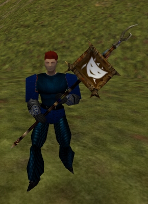 • A reinforced, symbol tipped banner with a Mask on it. It is in almost perfect condition, and the colors are quite vibrant. As you gaze at the Mask, it almost seems to be gazing back.