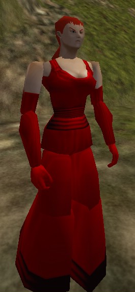 • A dress designed by the Gharu'ndim tailor, Xuut. The fibers of the dress look as though they could withstand the dyeing process.