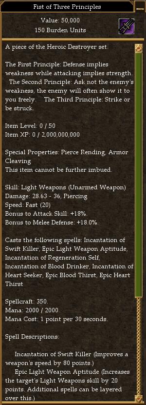 Media:Fist_of_Three_Principles_Talk.jpg Screenshot of it in-game with stats and LTX readout below. --Tuxtax 14:45, July 13, 2010 (UTC)