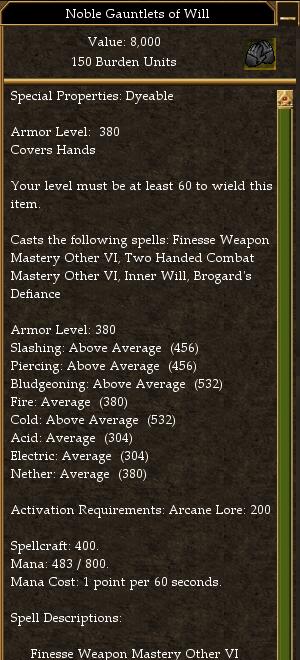 Note: Stats panel reflects first fail, then black dyed Gauntlets with the Will upgrade.