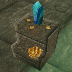 The Tanada Shrine of Stone is made of polished stone and scented wood. It seems to have a slot built into it, as if to accept some small, disc-shaped object...
