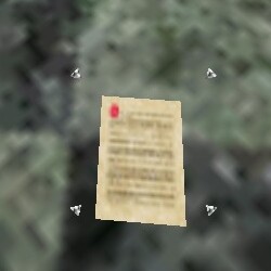 The center strip of a torn page. What little can be seen of the text looks to be written in ancient Falatacot symbols.