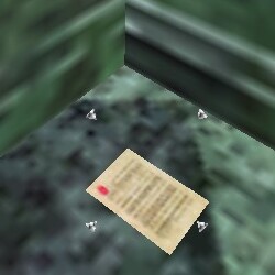 The left strip of a torn page. What little can be seen of the text looks to be written in ancient Falatacot symbols.