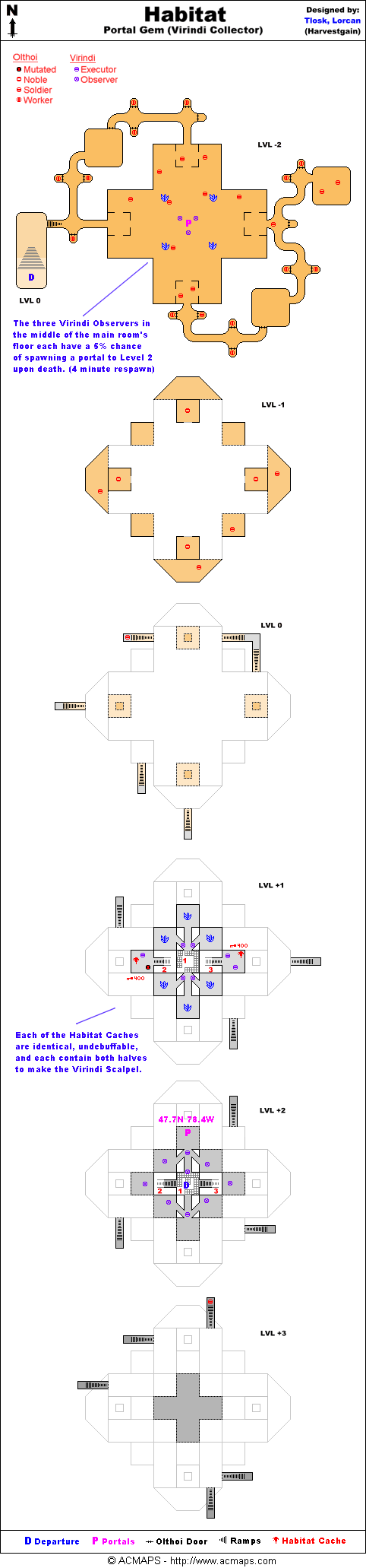 - There are two Habitat Caches, each contains a Glittering Blade and Flimsy Hilt used to make the Virindi Scalpel. A check against dagger skill is made and if it fails the parts are destroyed.